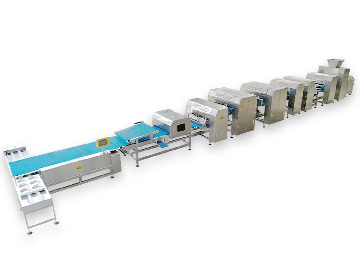 主要功能:面皮經(jīng)過壓面輥裝置的輾壓延展,使面皮更有光澤、品質(zhì)更加穩(wěn)定;壓面輥皆有厚薄調(diào)整裝置來設(shè)定面皮之厚度以增加或減少產(chǎn)品的重量;由氣動式或機(jī)械式分切裝置把面片切成成品,